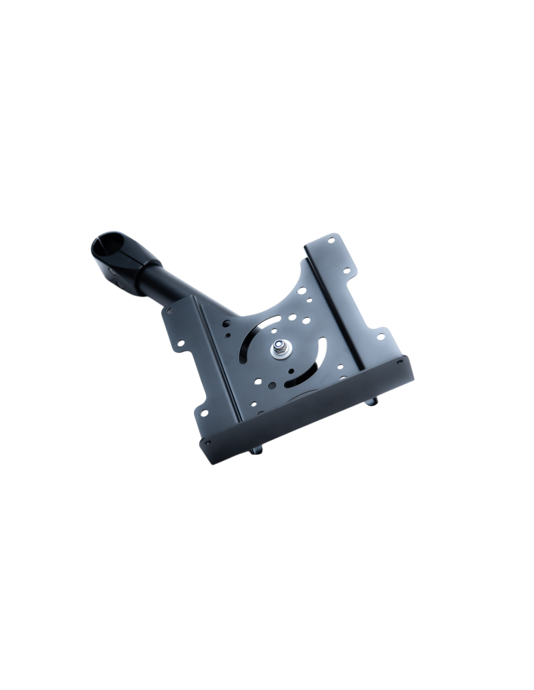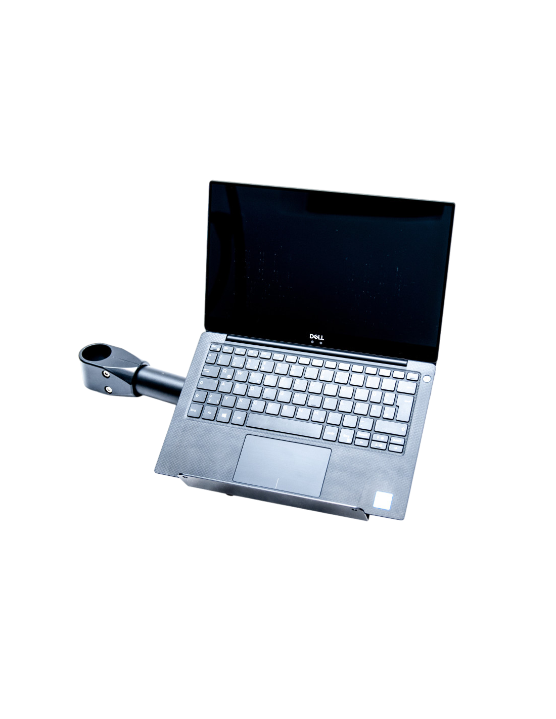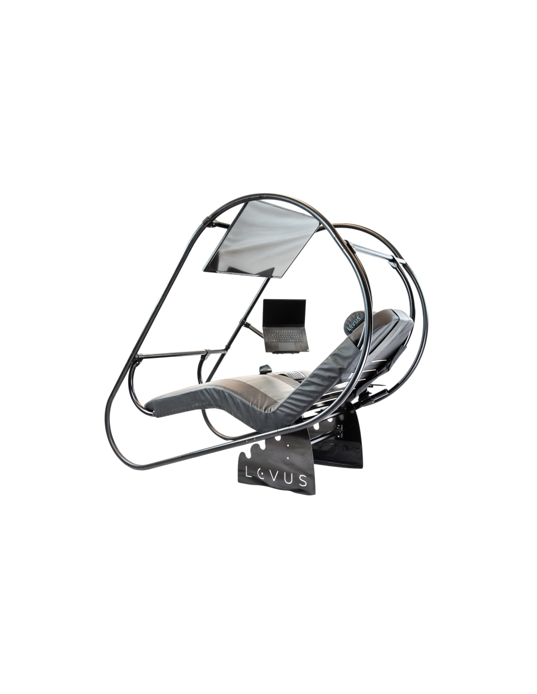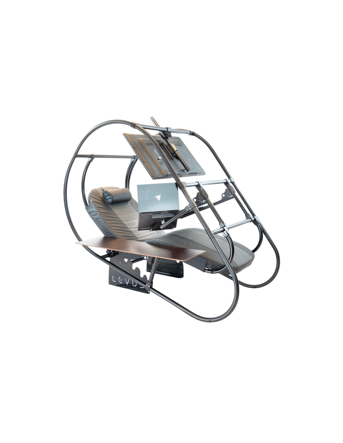 A compact add-on for keeping your laptop always on hand. The laptop holder is best mounted on the Levus core structure / side-pipe and placed over the mouse table, thus keeping the table clutter free, as well as securing your laptop from coffee-spills. Mounted alongside your main monitor, laptop can be used as an auxiliary monitor to see the content of your own webcam or have your zoom/teams colleagues displayed there while you're presenting content on your main screen.