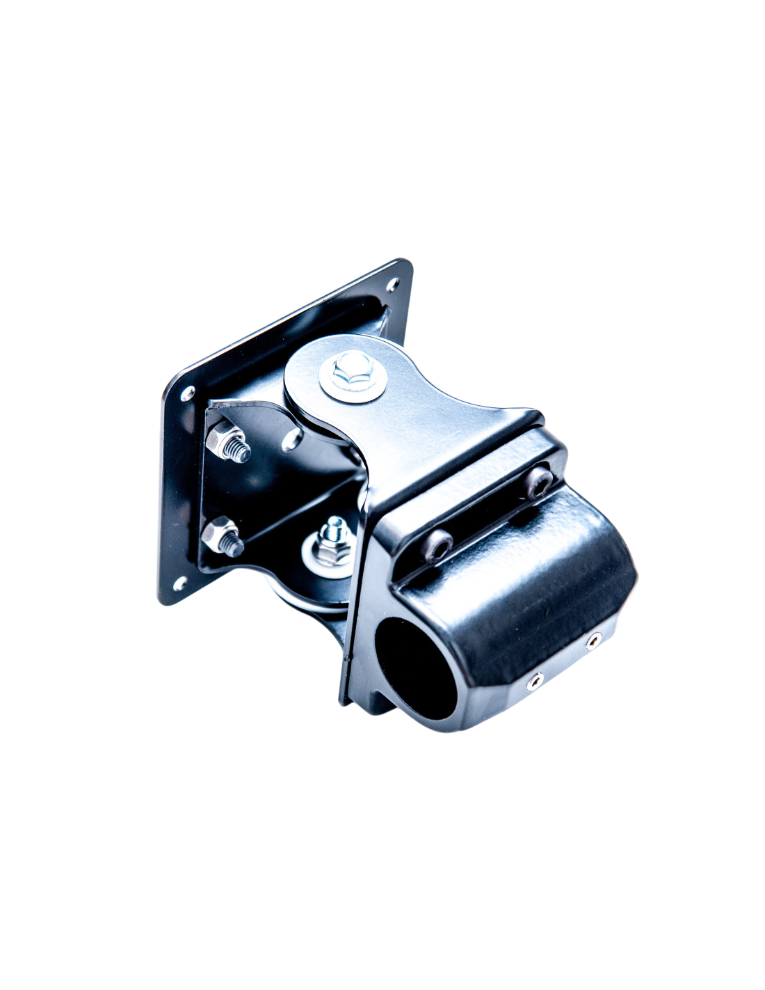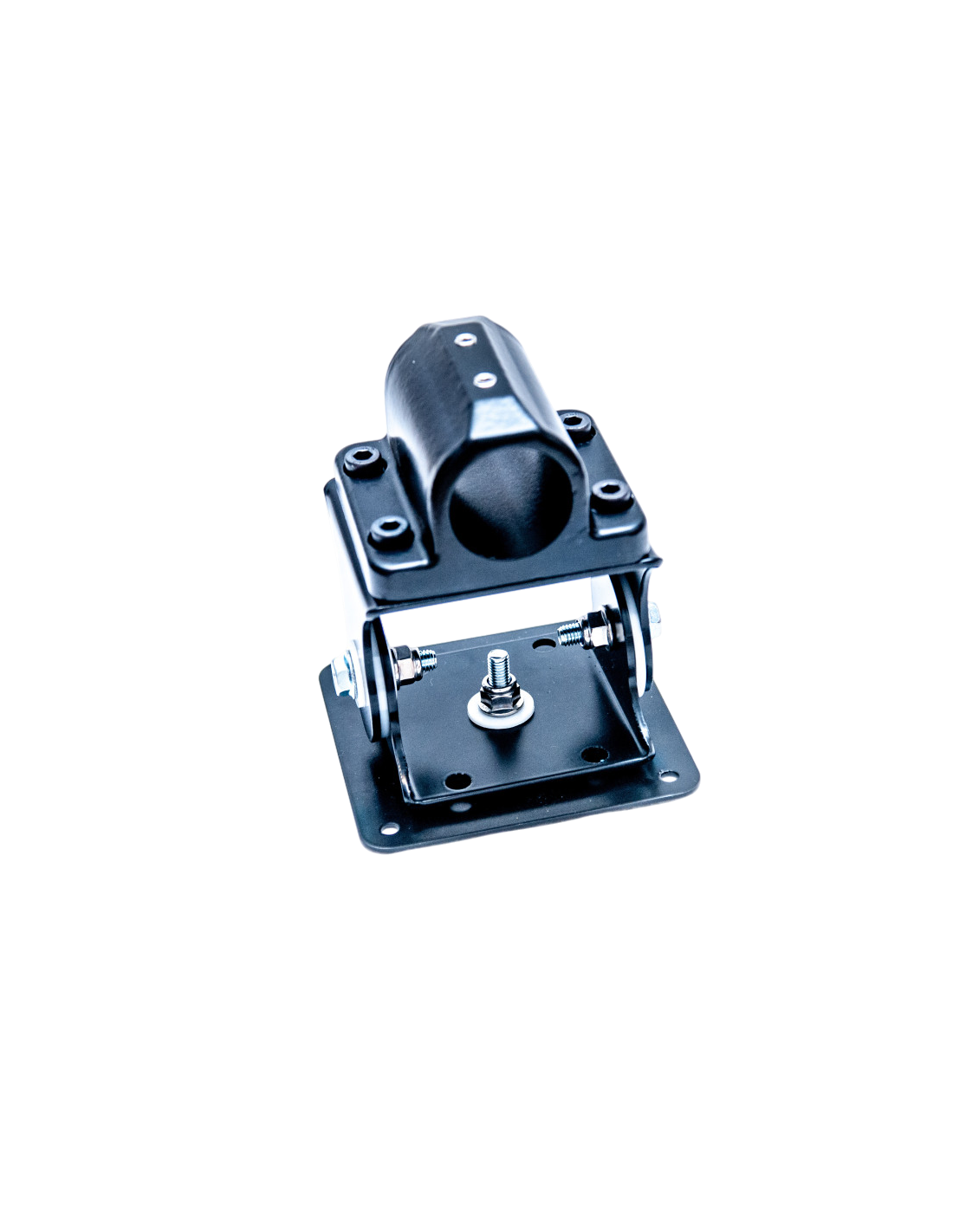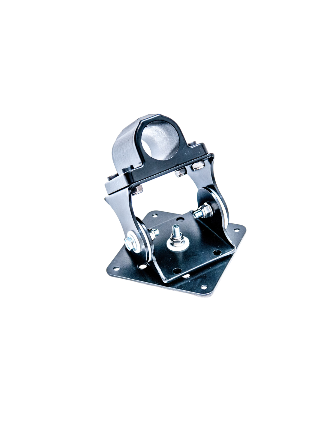- 3D Pivot: VESA Plate is attached to the U-brackets with 1 bolt - Monitor rotates around the pipe and can be tilted left/right and rotated around its central axis