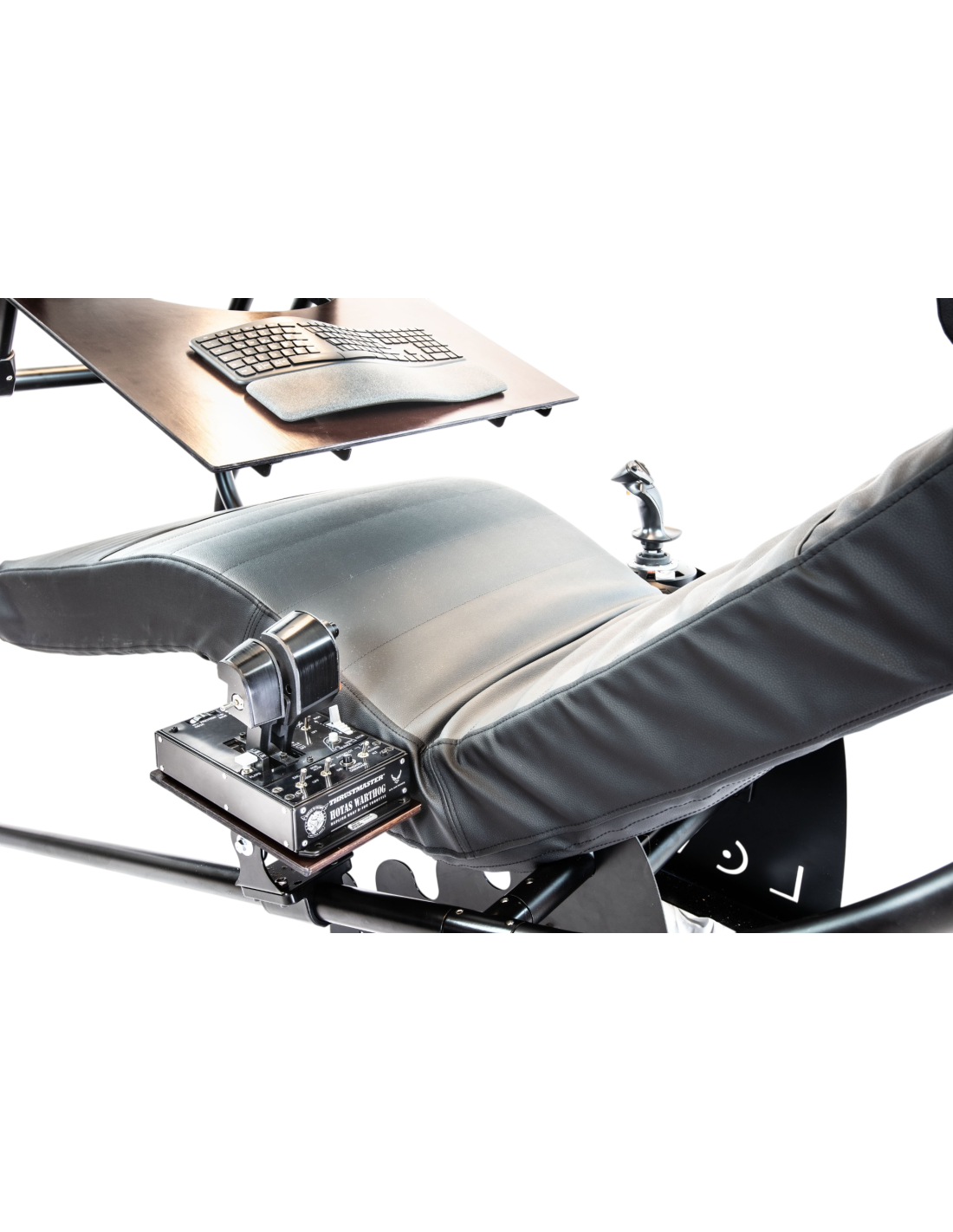 Co-developed with veteran Star Citizen pilots this setup features dedicated mounting pads to secure your flight controls at the perfect height. It creates the ultimate cockpit experience for prolonged campaigns.
